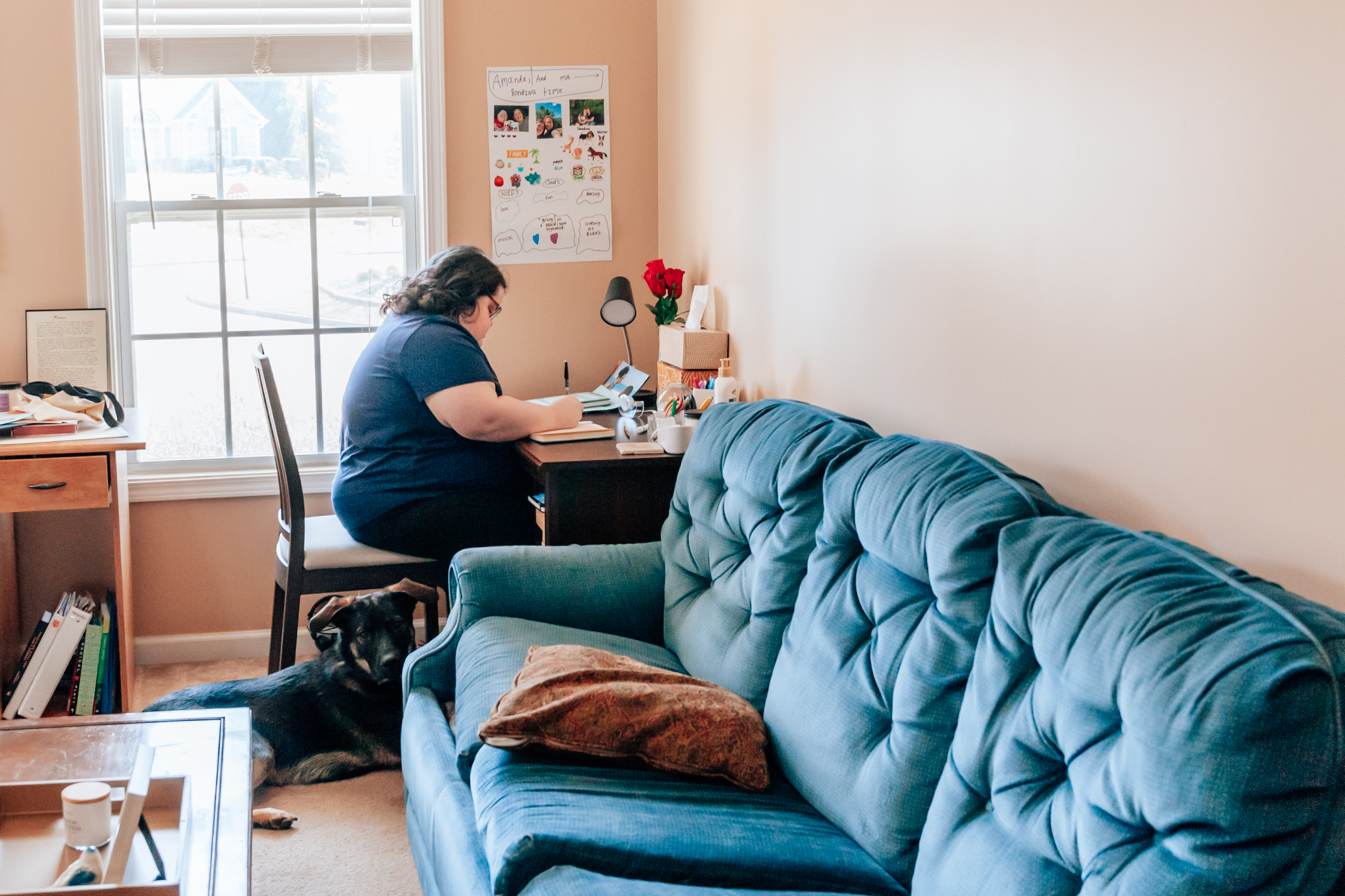Journaling is one of Amanda’s favorite things to do. This corner, in what we lovingly call the “extra room,” is where Amanda writes stories, draws pictures, and exercises the Image of God in her creativity. Many of her journals revolve around dream vacations, celebrities, and activities she would want to do with her family. She starts every morning here and does her journaling throughout the day. If you’re lucky enough to receive something she wrote or drew for you, it was done with love and thoughtfulness I am sure.